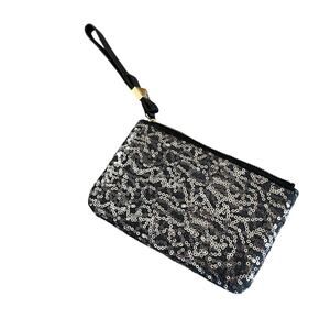KATE SPADE Leroy Street Glitter Bee Black Leather Silver Sequins Wristlet NWOT