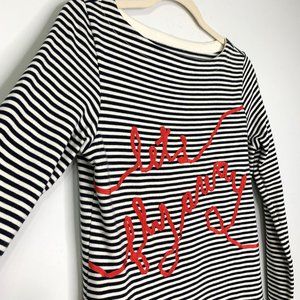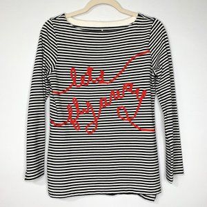 KATE SPADE Lets Fly Away Graphic Striped Long Sleeve Top Sz S