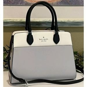 KATE SPADE MADISON MEDIUM SATCHEL SHOULDER BAG TOTE GREY COLORBLOCK LEATHER