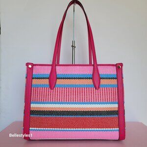 KATE SPADE Market Striped Woven Straw Medium Tote Bag-Wild Raspberry Multi ⭐