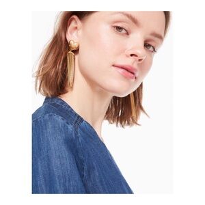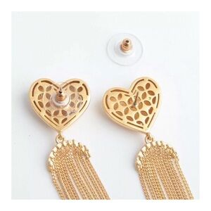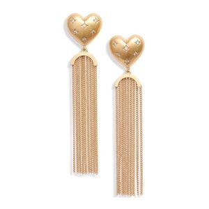 These lovely golden statement earrings are studded with sparkly stones and fringe. They’re a special reminder to always listen to your heart.