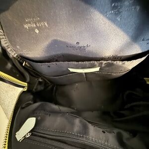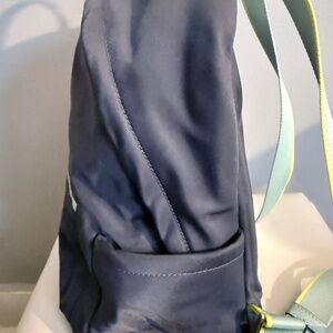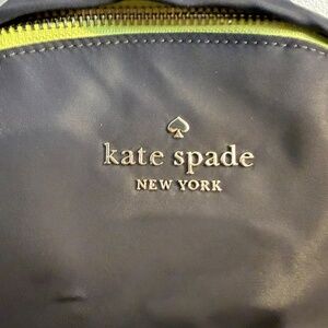 This is a Kate Spade New York Chelsea Medium Nylon Backpack in blazer blue navy with neon yellow and light blue accents.