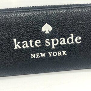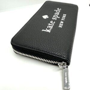 Keywords: kate spade zip wallet, accordion leather wallet, continental organizer, large zip around wallet, designer black wallet, pebbled leather purse, spade logo wallet, travel clutch, gift for her