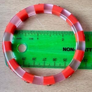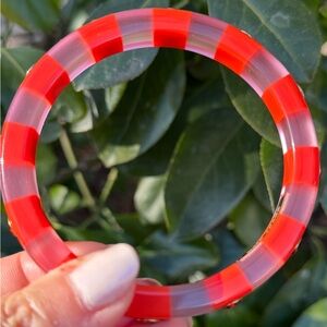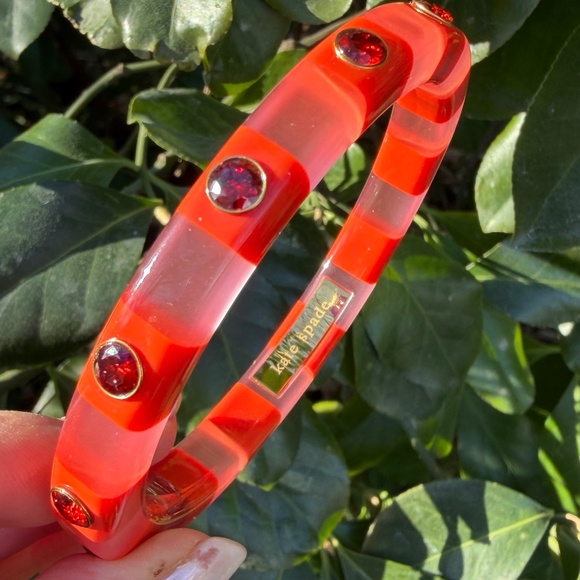 KATE SPADE NEW YORK CANDY STRIPE LUCITE BANGLE BRACELET VIVID RED RHINESTONES