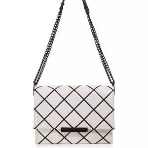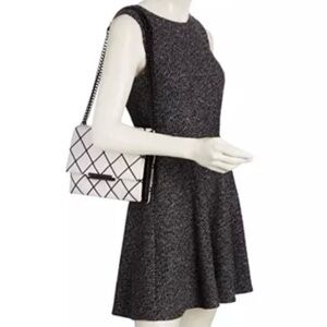 Checkmate: A graphic overlay adds dimension to this flap front shoulder bag from kate spade New York