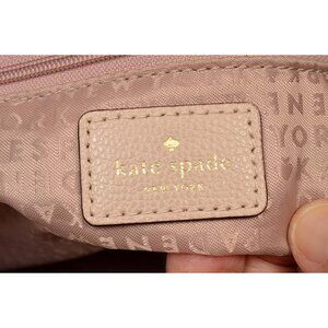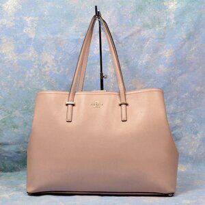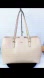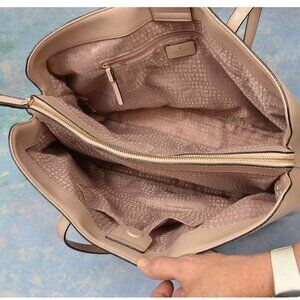 Beautiful pre-loved condition! The only minor issue is a light repair on one of the straps as shown in the photos and a little color worn off a couple of letters on the front. From a smoke/pet free home. This pretty blush/beige leather tote is LARGE. In the center is a padded zippered pocket to hold a laptop, tablet, ipad, etc. It also has a zippered pocket inside back and 2 slip pockets inside front. Has magnetic loop closure on top. No pockets on the outside. Measures approx. 16"long x 11"high x 6"deep. Double strap drop is approx. 11". Gold tone hardware. Has protective 'feet' on the bottom. PLEASE ALWAYS LOOK VERY CLOSELY AT ALL THE PHOTOS IN CASE I MISSED SOMETHING BEFORE DECIDING TO MAKE A PURCHASE!! REASONABLE OFFERS ALWAYS WELCOME!