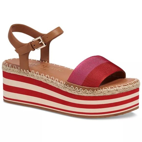 Beachy striped platforms and espadrille accents complete a warm-weather go-to in the strappy Picnic sandals by Kate Spade New York.
