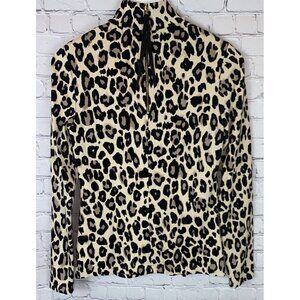 KATE SPADE NEW YORK Womens' Brown Leopard Mock Neck Shirt Back Zipper Size 6