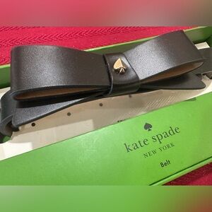 KATE SPADE NEW YORK bow belt with spade Logo Leather black Size s/m New