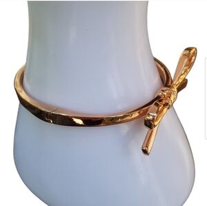 Beautiful rose gold with bow design hinged bracelet by Kate Spade. This bracelet is new without tags. Inside diameter of bracelet measures 7" when closed. Bracelet opens on a hinge. Bracelet is hallmarked Kate Spade New York on inside.