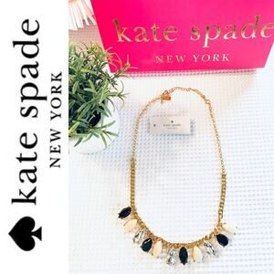 KATE SPADE NWT Black & Cream Drop Blcak Cream Crystal Necklace w/ Dust Bag