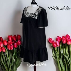 KATE SPADE NWT BROOME ST BLACK EMBROIDERED MINI DRESS SQUARE NECKLINE SIZE SM