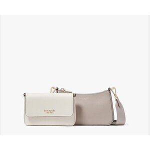 KATE SPADE NY Double Up leather crossbody + Dust bag White/Gray (Defective)