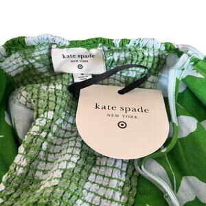 KATE SPADE NY FOR TARGET GREEN FLORAL RUCHED TIE LINEN BLEND TOP MEDIUM NWT.