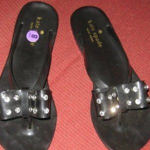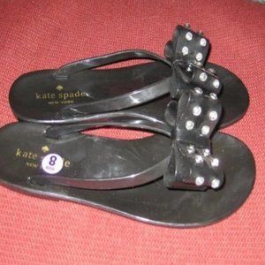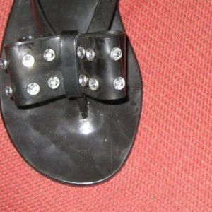 ❤️KATE SPADE New York Black Rhinestone Bow Jelly Sandal Slide Flip Flop Shoes 8