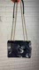 Excellent condition with no flaws on this beautiful little convertible shoulder to crossbody bag. Pebble leather that is a dark navy blue with black and gray rose floral pattern. Slip pocket on back and magnetic flap. Inside main section is a slip pocket with logo nylon fabric.