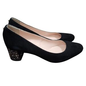 Elevate your wardrobe with the KATE SPADE New York Dolores Block-Heel Pumps. Crafted with luxurious black suede uppers, these size 7 medium-width heels blend classic style with a modern block heel design, perfect for a variety of occasions. The pumps feature a chic pump style that's versatile enough for office attire or evening wear. With their comfortable 7-inch heel height, these shoes strike the perfect balance between elegance and comfort for all-day wear.