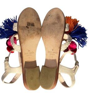 KATE SPADE New York Sunset Women's Sandals Beige Leather Woven Tassel Size 7M