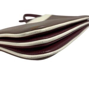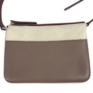 Bottom corners have signs of wear, last two photos. Two ink marks on front right side, 14th photo. Interior fabric is pretty clean with an ink mark and minor signs of wear. Width: 9", Height: 6.75", Depth: 1", Strap drop: 20" + adjustable.