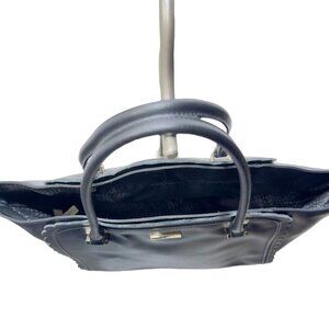 KATE SPADE New York Women's Black Leather Tote Bag Scalloped Straps