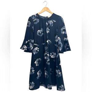 KATE SPADE Night Rose Crepe Star Bright Rich Navy Dress Floral Bell Sleeves Size 10