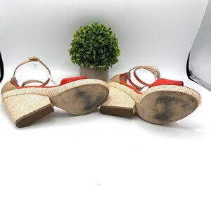 KATE SPADE ORANGE LEATHER ESPADRILLE WEDGE SANDALS HEELS - 7.5