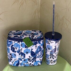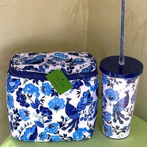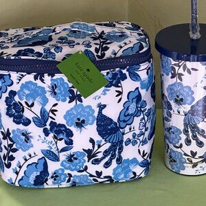 KATE SPADE PEACOCK FLORAL LUNCH TOTE + TUMBLER (SET):NWT