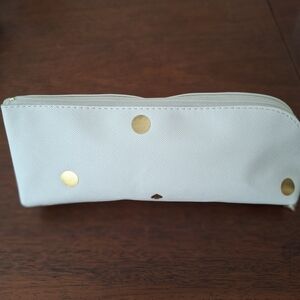 Kate Spade pencil case in white with gold polka-dots and Kate Spade logo on front. this case is in excellent condition.