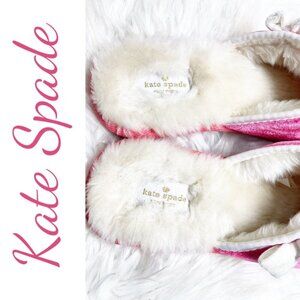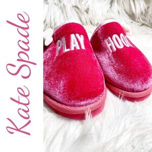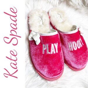 KATE SPADE PLAY HOOKY PINK VELVET SLIPPERS FAUX FUR LINING, SIZE 7