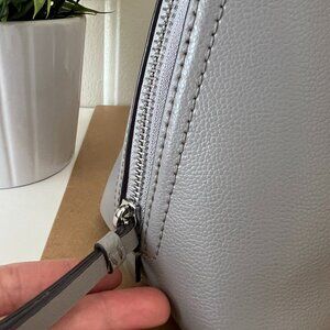 - Satchel with zipper closure. Two slide pocket and one zipper pocket interior.