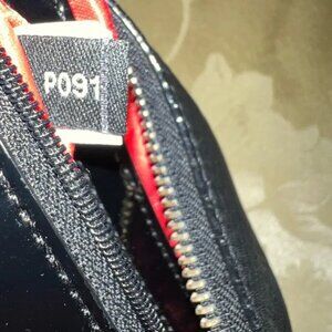 - Backwall leather trimmed zip pocket with leather Logo label