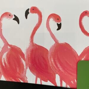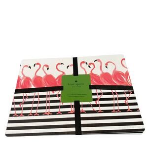 KATE SPADE Pink Flamingo Black Striped Easy Care Vinyl Placemats Set of 4 NEW
