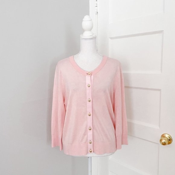 Kate Spade New York cardigan sweater in light pink, perfect for office, vacation, spring/summer, casual preppy