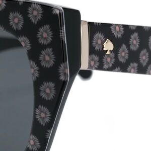 The Kate Spade Jalena Sunglasses feature a thick-rimmed rectangular shape for women. The Acetate frame is printed with a floral pattern and accented with metal details and the iconic Spade logo on the temples.