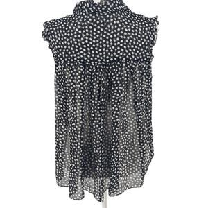 🖤 KATE SPADE Polka Dot Silk Blouse S EUC Black White Ruffle Sleeveless Top