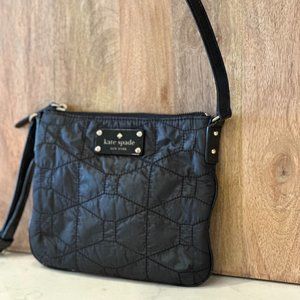 KATE SPADE QUILTED NYLON BLACK CROSSBODY BAG WITH LEATHER SHOULDER STRAP