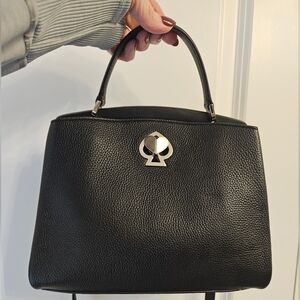 Great preloved condition on this super cute Kate spade tote! She has some gentle wear and rubbing to leather that can be seen in certain angles, but is in overall great condition! Completely clean! Pristine edges! ♤ brass heart closure is absolutely adorable! Bag can be used as a tote or crossbody. Has a long strap that is detachable and a short handle. Pebbled leather with smooth italian leather trim featuring a spade heart twistlock closure, top handle, a faux microsuede lining, detachable and adjustable shoulder strap, foil embossed logo, exterior slip pocket at the rear, 1 main interior compartment with a slip pocket and a gold toned metal hardware Dimensions: H" 9.4 x W" 10.5 x D" 5 Disclaimer: ◇Although I try my best to describe the condition of each item with pictures, please note that items may have unnoticeable flaws. ◇The coloring of the product may not be displayed exactly because of the state of lighting and the display of the PC you are on. I try to offer a variety of photos to ensure correct representation. ◇All items are expected to show some signs of wear even if they are new with tags. ◇Items may require cleaning per YOUR preference. ◇Please manage your expectations and review photos thoroughly. Ask questions on anything you need clarified as they are part of the description. ◇Items are sold "As-ls." No refunds, returns, or cancelations. Please bid responsibly. ✨️ All my items are stored for shipping in a smoke/pet FREE home