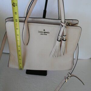 KATE SPADE ROWE BABY PINK PEBBLE LEATHER SATCHEL/CROSSBODY BAG TASSEL , GOOD USED CONDITION, SOME OVERALL SMALL SIGNS OF USE/WEAR. GORGEOUS BABY PINK COLOR, REMOVABLE AND ADJUSTABLE CROSSBODY/SHOULDER STRAP. ZIP CLOSURE.