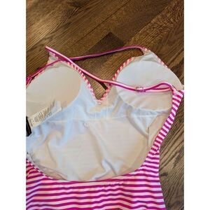 KATE SPADE Ringmaster Swimsuit Striped Radiant Pink Plunging V-neck Size M BNWT
