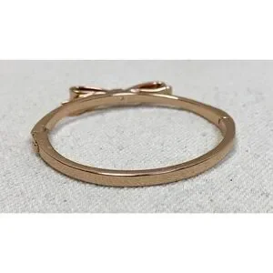 Rose gold tone metal hinged bangle with clasp and bow detail- has some damage on one side of bangle as shown in photos- great for stacking