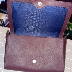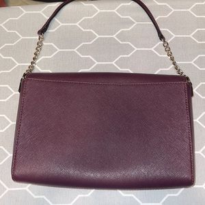 dark purple/maroon kate spade satchel or crossbody with a little bit of chain. got it for christmas for a good sale price but used once or twice, in great condition! smoke free home!