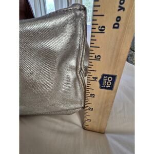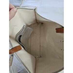 The Kate Spade Saturday Silver Metallic Canvas Large Tote Bag Purse is a stylish and versatile accessory for women. With a square shape and double straps, this tote features a sophisticated silver exterior with gold hardware accents. Ideal for travel, casual outings, or business meetings, this large bag offers ample space with a matte finish and adjustable brown leather straps for comfort. Perfect for everyday use, this tote showcases the classic Kate Spade style with eco-friendly canvas material and a white canvas lining. Exterior is in excellent condition; some pen marks on interior(see photo)
