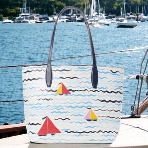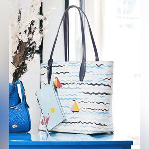 KATE SPADE SET SAIL LARGE LEATHER TOTE BAG BEACH SUMMER WITH COSMETIC WRISTLET