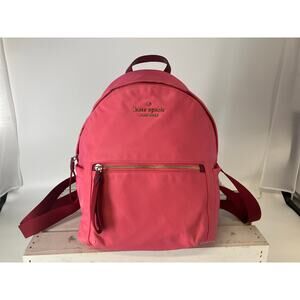 KATE SPADE, SMALL PINK AND MAROON NYLON BACKPACK WITH POCKET