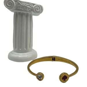 This pre-owned bracelet bangle features a sleek, high-quality metal construction, adorned with the iconic Kate Spade emblem, subtly engraved to signify its authenticity. Its resplendent design is characterized by a refined and polished exterior that glistens in the light, making it the perfect accent for any occasion, from casual gatherings to formal affairs.