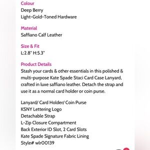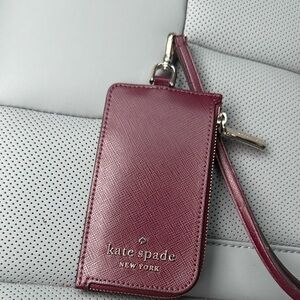 KATE SPADE STACI CARD CASE LANYARD IN DEEP BERRY NEW