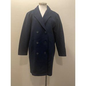 KATE SPADE Saturday Navy Blue Wool Double Breast Cocoon Peacoat Pockets sz.M