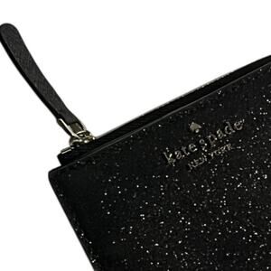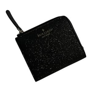 KATE SPADE Shimmy Glitter Black Small L-Zip Leather Trim Bifold Wallet