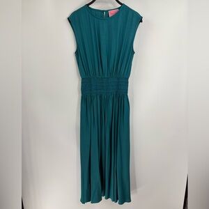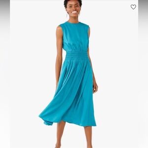 KATE SPADE Silk-blend Twill Smocked-waist Dress In Dark dress size small NWT