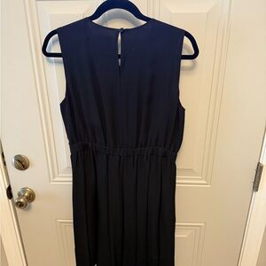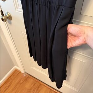 Elegant sleeveless black dress. Perfect for any occasion. Light weight with a cinched waist to enhance the figure. Has pockets and is perfect for weddings, graduation parties, or any LBD occasion.